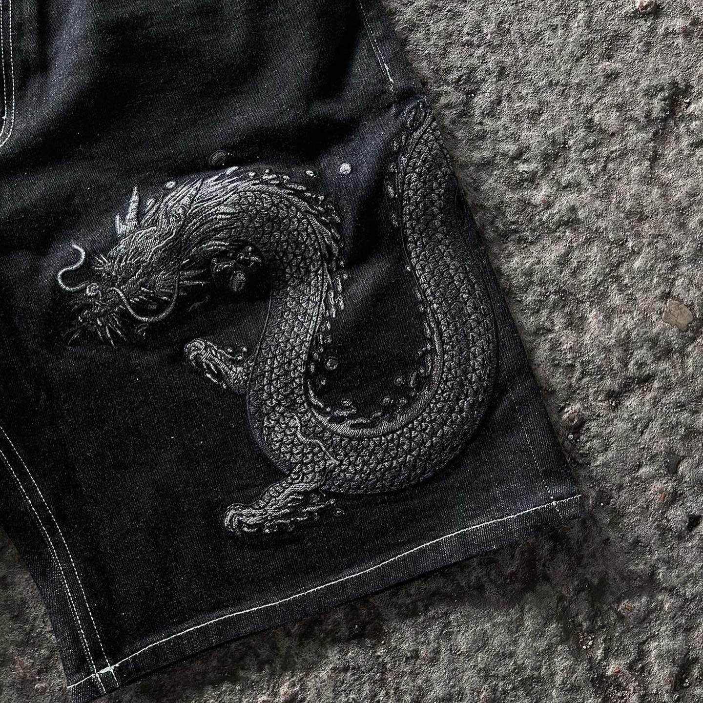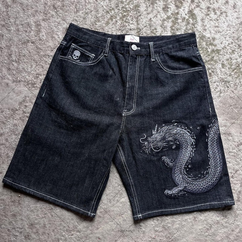 Dragon Embroidered Jorts